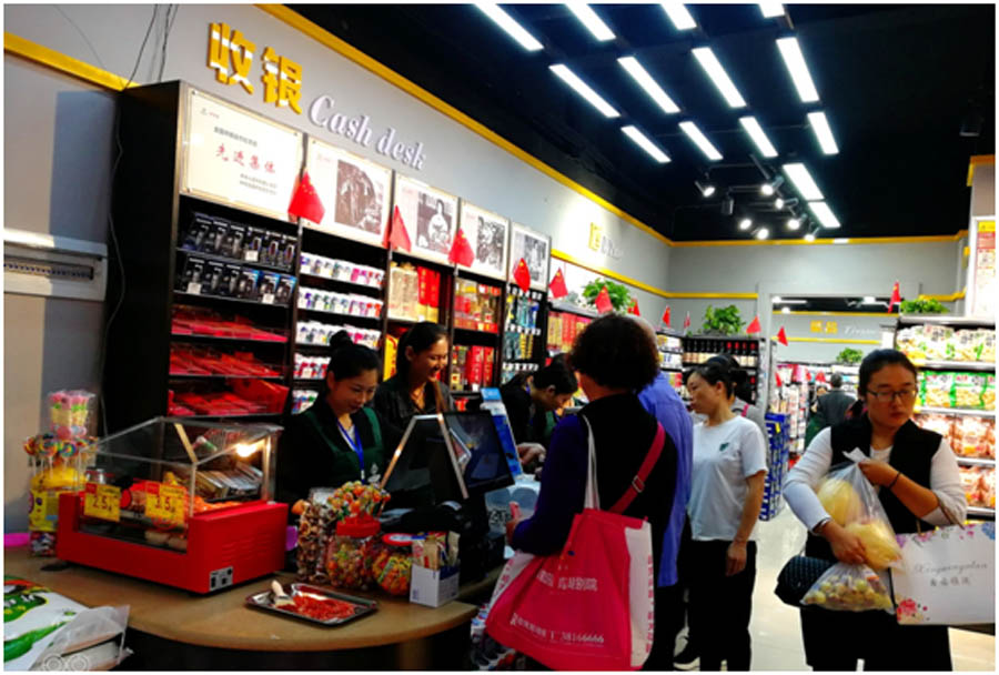 眉山下西街店營業面積近400平方米,經營商品除日用消費品、糧油、日雜用品外,還為消費者提供了品類豐富的新鮮水果,店內商品SKU數超過6000個,該店是輻射范圍內購物便利、支付便捷、品類豐富、老百姓值得信賴的綜合型城市超市。